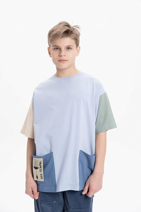 Футболка для мальчика оверсайз - это идеальный выбор для активного ребенка. По низу большие накладные карманы. Вырез горловины обработан эластичной тканью — она прекрасно держит форму, не растягивается, при этом ребёнку удобно надевать и снимать футболку. На кармане декоративная нашивка с принтом и надписью. Перевод надписи "use (b)rain - используй Б(рейн)! Спортивная футболка подходит как для подростков так и для малышей в детский сад. Подходит для любого времени года.