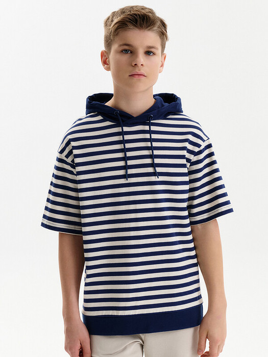 Футболка для мальчика в полоску  - это идеальный выбор для активного ребенка. Тельняшка с капюшоном станет стильным дополнением гардероба малыша или подростка. Капюшон одношовный с утяжкой для регулировки объема. Полосатая спортивная футболка подходит для любого времени года, её можно носить как летом, так и в холодное время года в качестве среднего слоя одежды. Помните о правильном уходе за изделием: рекомендуется стирать при температуре не выше 30 °C, без предварительного замачивания, с изнанки. Это поможет сохранить качество и цвет футболки на длительное время.
