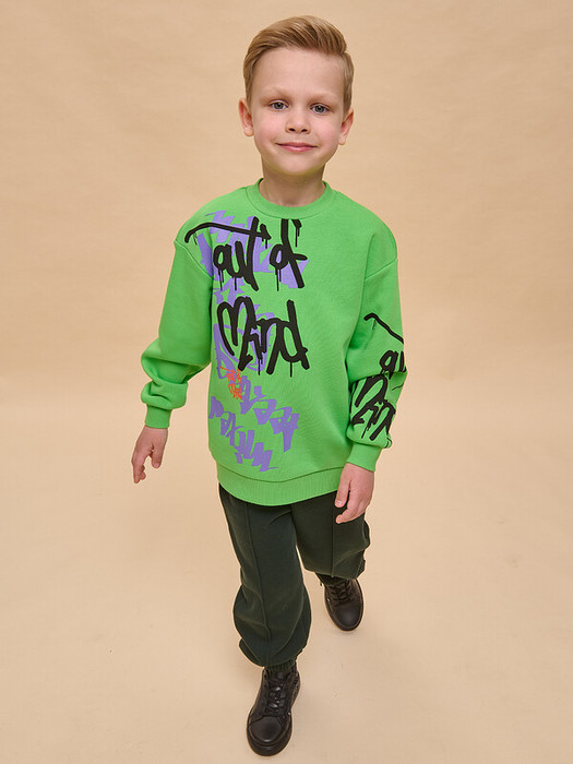 Свитшот детский для мальчика. Свободная толстовка со спущенным плечом и углубленной проймой подарит ребёнку комфорт и не будет стеснять его движений. Объёмный джемпер средней длины — актуальный модный тренд. Манжеты, отделка горловины и низа изделия выполнены из эластичной рибаны (ткани в рубчик). Она не растягивается, отлично сохраняет форму, при этом ребёнку удобно надевать и снимать свитшот. Модель неприхотлива в уходе. Свитшот с принтом по переду и на левом рукаве выполнен из футера с начёсом. Принты мягкие и эластичные, великолепно переносят частые стирки. Надписи переводятся: «не в себе», «смешанные чувства». В составе ткани преобладает высококачественый хлопок — толстовка приятна на ощупь и прекрасно пропускает воздух. Полиэстер помогает сохранить цвет и первозданный внешний вид надолго. Детский свитшот выполнен в модном желтом цвете. Размерная линейка: 1 (86); 2 (92); 3 (98); 4 (104); 5 (110); 6 (116); 7 (122); 8 (128); 9 (134); 10 (140); 11 (146). Оверсайз-свитшот подходит как для маленьких мальчиков, так и для подростков. Джемпер идеален для детского сада, прогулок, активного отдыха, дома. Свитшот с начесом можно носить круглый год: весной и осенью (демисезон), зимой, в прохладную погоду летом. Это отличный подарок сыну, внуку, брату или племяннику на любой праздник.