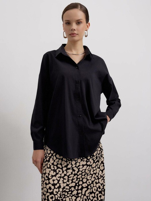 Лаконичный дизайн, свободный крой и абсолютный комфорт благодаря полотну с хлопком – эта рубашка имеет все шансы стать самой любимой частью гардероба для теплого сезона. · классическая длина· умеренно свободный крой· воротник с цельнокроеной стойкой· длинные втачные рукава с манжетами по низу· застежка на пуговицы по планке· спинке притачная широкая кокетка · низ фигурной формы (перед короче спинки)· мягкое и приятное к телу хлопковое полотно· устойчивый цвет и сохранение формы при соблюдении рекомендаций по уходу· выполнена в лучших традициях минимализма.