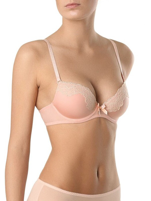 Бюстгальтер серии Fleur выполнен в романтическом стиле из шелковистого полотна, сетки и цветочного кружева с оригинальным фигурным краем. Преимущества модели:- формованные чашки push-up;- на каркасах;- полностью съемные бретели;- элегантный декоративный бантик спереди.