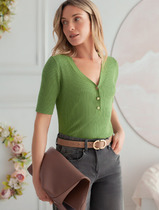 09.04 Vilatte Джемпер тонкой вязки из вискозы с нейлоном D39.337 зеленый