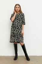 Платье c леопардовым рисунком LPL 1045 – must have в гардеробе стильных и уверенных в себе девушек. «Хищный» рисунок поможет сделать повседневным образ запоминающимся и индивидуальным. В холодную погоду для создания бунтарского посыла рекомендуем надевать платье LPL 1045 с кожаными леггинсами. · круглый вырез горловины· длина midi· длинные рукава· приспущенное плечо· манжеты с легким мерцанием люрекса· свободный силуэт· плотный трикотаж· жаккардовое переплетение «leo»· сохранение цвета и формы после многочисленных стирок· не требует особого ухода· оригинальный и запоминающийся дизайн для повседневного гардероба