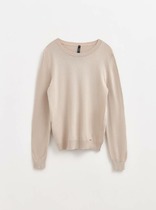 Круглая горловина, обработанная эластичной рибаной, плотно прилегает к шее, сохраняя тепло и удобство. Спущенное плечо и углубленная пройма обеспечивают свободу движений, а рукава рубашечного кроя с манжетами из рибаны подчеркивают расслабленный стиль. Низ свитшота дополнен отрезным поясом из той же эластичной ткани, что гарантирует идеальную посадку по фигуре.
