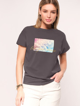09.04 Vilatte Футболка из хлопкового облегченного полотна с принтом фольгой D49