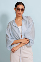 Блузка свободного силуэта выполнена из смесовой струящейся ткани. Модель в вертикальную полоску дополнена золотистыми рельефными пуговицами. Свободный силуэт подходит для любой фигуры. Для идеального роскошного образа используйте в качестве низа брюки светлых тонов. На спинке изделия фирменный металлический логотип бренда.