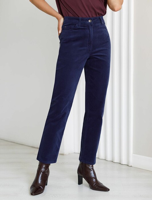 Брюки выполнены из мягкого хлопкового микро-вельвета с добавлением эластана. Изделие комфортно садится по фигуре и не сковывает движения. Модель с пятью карманами, как у джинсов-скинни дополнена высококачественной фурнитурой с фирменным логотипом бренда. Хорошо комбинируется с вязаным трикотажем, блузками и денимом. Как альтернатива брюкам, в нестрогий офисный дресс-код.