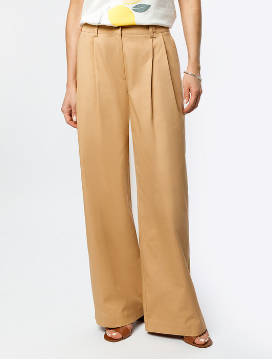 Совместные закупки Екатеринбург Женская одежда Брюки — 09.04 Vilatte Брюки-палаццо из хлопка с защипами D24.268 темно-бежевый