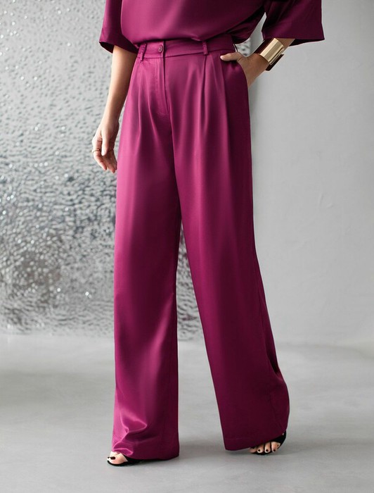 Совместные закупки Екатеринбург Женская одежда Брюки — 14.04 Vilatte Брюки палаццо широкие из струящегося сатина D24.304 бургунди