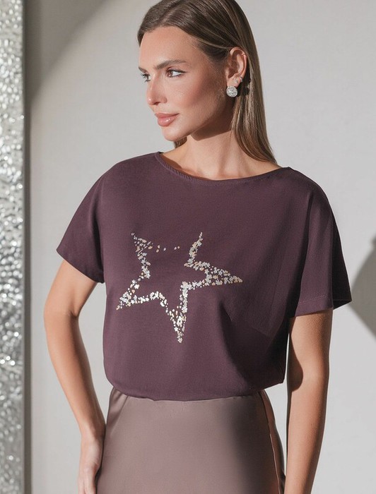 Совместные закупки Екатеринбург Женская одежда Футболки — 09.04 Vilatte Футболка D49.133 бургунди_stars