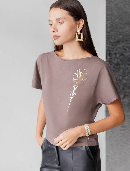 Совместные закупки Екатеринбург Женская одежда Футболки — 09.04 Vilatte Футболка D49.133 кофейный_цветок