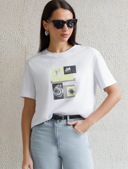 Модная футболка пудрового цвета привлекает внимание своим интересным дизайном и ярким принтом. Благодаря прямому крою изделие комфортно садится на любую фигуру, в том числе на большие размеры, и не сковывает движений. Круглый вырез подчеркивает современный стиль, а натуральный материал из хлопка с добавлением эластана обеспечивает удобство в повседневной носке и приятные тактильные ощущения. Прочность и износостойкая структура позволяют сохранять свежий внешний вид после множества стирок. Принт в виде цветов и надписи нанесен красками с устойчивым покрытием, перевод надписи: Everyday essentials - Повседневные вещи, которые необходимы., Стильная футболка гармонично вписывается в любой гардероб и подойдет для прогулок, отдыха или неформальных встреч. Благодаря особенностям кроя модель хорошо сидит, скрывая недостатки и подчеркивая достоинства. Яркая футболка идеально сочетается с базовыми вещами, позволяя создавать новые интересные образы каждый день.
