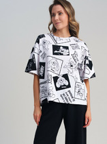 09.04 Vilatte Футболка из эластичного футера с авторским принтом D49.095 кофе_н