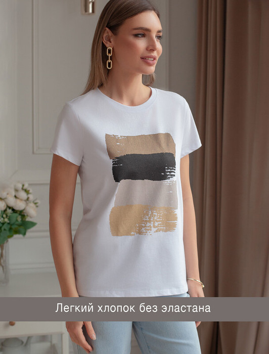 Совместные закупки Екатеринбург Женская одежда Футболки — 09.04 Vilatte Футболка из 100% хлопка с авторским принтом. D49.092 белый_art