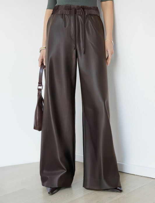 Трендовая модель для смелых fashion-образов. Эти брюки из качественной искусственной кожи создают бунтарский урбанистический лук. Модель с высокой посадкой на поясе и равномерно широким клешёным силуэтом от бедра до низа визуально вытягивает фигуру. Мягкая подкладка пояса обеспечивает комфорт, не сдавливая талию. Универсальный черный цвет легко комбинируется с объемными худи, кроп-топами или лаконичными рубашками. Идеальны для создания образов в стиле гранж, streetwear или modern rock-chic.