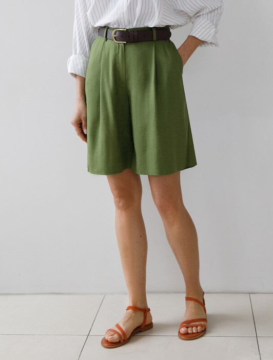 09.04 Vilatte Шорты изо льна с вискозой D28.052 натуральный зеленый