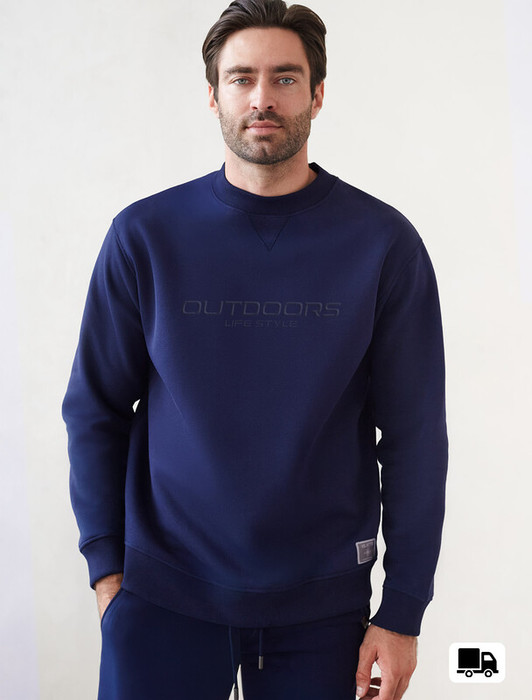 Совместные закупки Екатеринбург Мужская одежда Джемперы, свитеры — 21.04 Vilatte Свитшот из премиального футера трехнитки с начесом U49.018 т.синий