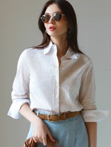 09.04 Vilatte Блузка приталенного силуэта в полоску из эластичного хлопка D29.3