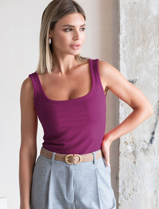 Совместные закупки Екатеринбург Женская одежда Майки, топы — 09.04 Vilatte Топ из трикотажа в широкий рубчик D43.224 пурпурный