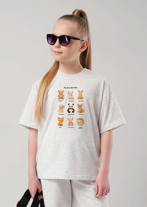12.04 Clever Футболка детская для девочки CLE 866885/13кдп_п меланж св.серый