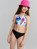 Сплошной купальник с ярким принтом. Узкие бретели отделаны оборкой. Впереди на подкладе.
