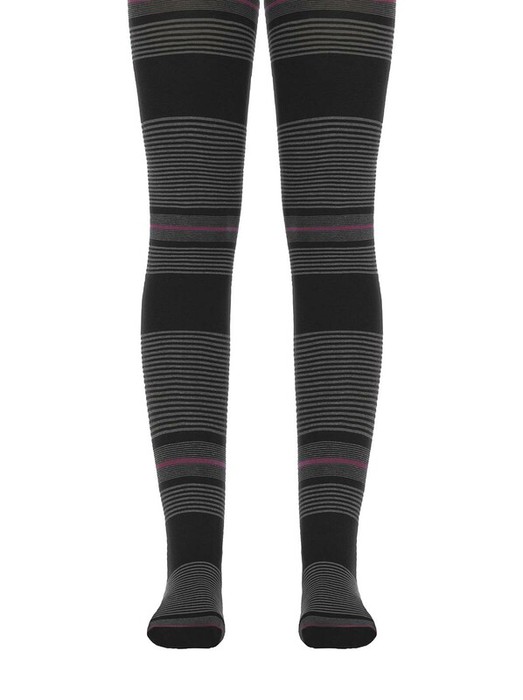 Плотные эластичные фантазийные колготки 50 DEN из нитей микрофибры и LYCRA с горизонтальным рисунком "цветная полоска", комфортный плоский шов, уплотненный мысок. Рекомендация по уходу: на колготках, в составе которых есть нить микрофибры, при попадании влаги может появиться визуальный эффект "неравномерного окраса", который легко устранить: равномерно смочите и высушите колготки.