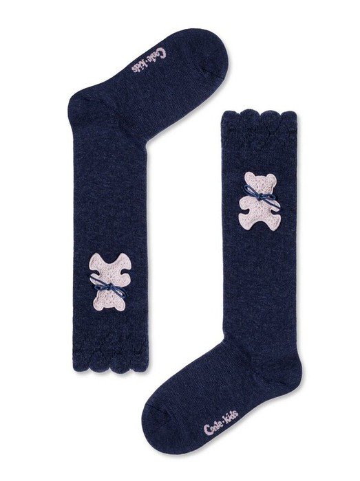 Удлиненные хлопковые носки TIP-TOP созданы, чтобы согревать ножки, дарить абсолютный комфорт и вносить в детский образ индивидуальную изюминку. Вам понравятся оригинальный дизайн с отсылкой к стилю ретро: декоративный борт, по бокам – оригинальный пришивной медведь.