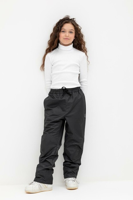 Ветровочные брюки из мембранной, фактурной ткани с дополнительной тефлоновой обработкой. Данный вид обработки предохраняет изделие от загрязнения и лучше отводит влагу. Подклад из 100%  полиэстера - флиса. Область коленей дополнительно усилена деталями из основной ткани. В поясе предусмотрен шнурок для регулировки ширины изделия. Во всех изделиях верхнего ассортимента для безопасности ребенка предусмотрены светоотражающие элементы.