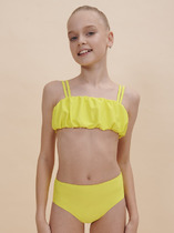 Слитный купальник на бретелях для девочки. Украшен оборками. Внутри подклад. Оригинальная набивка выполнена из стойких гипоаллергенных красителей.