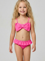 Слитный купальник на лямках для девочки. Украшен оборками. Внутри подклад.