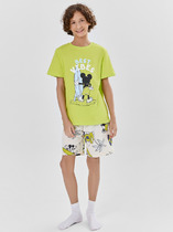 Трикотажная пижама из натурального хлопка. Футболка с короткими втачными рукавами изготовлена из эластичного трикотажа в рубчик. Шорты с эластичной резинкой в поясе выполнены из гладкого трикотажа супрем. Оригинальная набивка выполнена из стойких текстильных гипоаллергенных красителей. Изделие сохраняет цвет и форму после многократных стирок. Все трикотажные полотна производятся в соответсвии с нормами швейцарского сертификата ЭкоТекс.