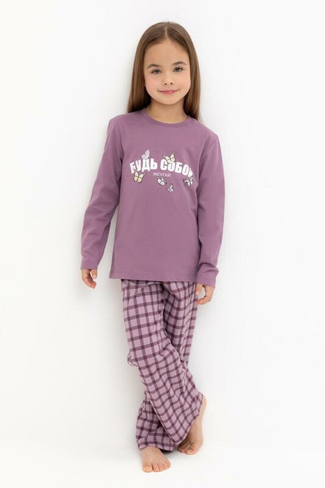 12.04 Crockid пижама для дев К 1623/спелый виноград,клетка