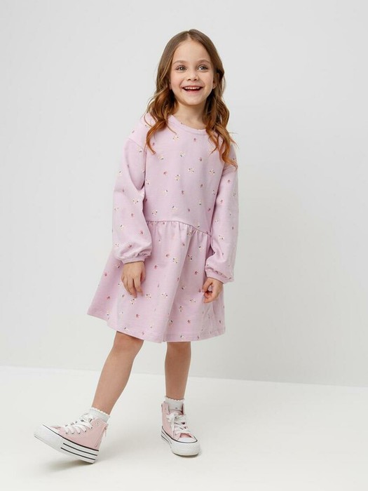 Платье для девочки с длинными рукавами из мягкого петельчатого трикотажа. Для удобства одевания в 98 размере платье застёгивается на кнопки спереди. Платье сохраняет форму и стойкий цвет после многочисленных стирок и идеально подходит на каждый день.