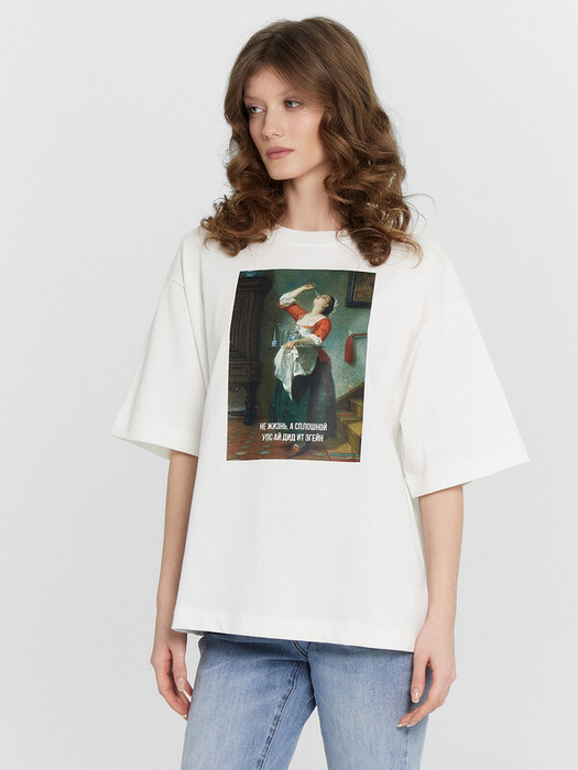 Эта женская футболка оверсайз — идеальное сочетание комфорта, стильного дизайна и универсальности. Модель выполнена из нежной хлопковой кулирки — мягкого, приятного на ощупь материала, который обладает высокой воздухопроницаемостью. Благодаря этому ткань позволяет коже дышать, предотвращая перегрев и обеспечивая комфорт даже в жаркую погоду. Отличная износостойкость материала гарантирует долгий срок службы изделия, а также сохранение формы и качества даже после многократных стирок. Свободный крой создает расслабленный и современный образ, позволяя легко комбинировать футболку с различными элементами гардероба. Округлая горловина добавляет классический акцент, а рукава со спущенной линией плеча придают непринужденности и легкости в движении. Этот стильный элемент гардероба идеально подходит для повседневного ношения, прогулок, встреч с друзьями и активного отдыха. Дополните свой гардероб этой удобной и модной футболкой, наслаждаясь качеством и комфортом каждый день!
