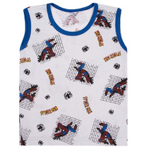 Майка полуприлегающего силуэта из хлопковой трикотажной кулирки. Длина до середины бедер.  Горловина круглая, окантована мягкой бейкой. Нижний срез обработан плоским швом. Комфортная классика для вашего мальчика!