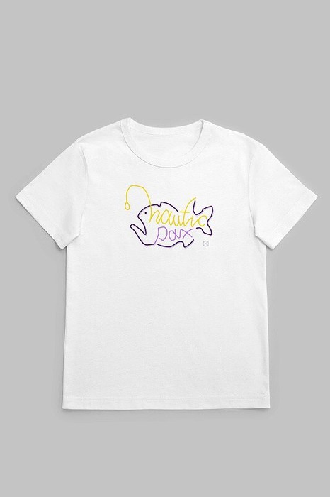 Футболка свободного кроя, втачной рукав. Горловина окантована бейкой из рибаны