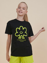 Футболка унисекс детская. Спущенное плечо, втачной рукав. Укрепление горловины спинки контрастной бейкой.