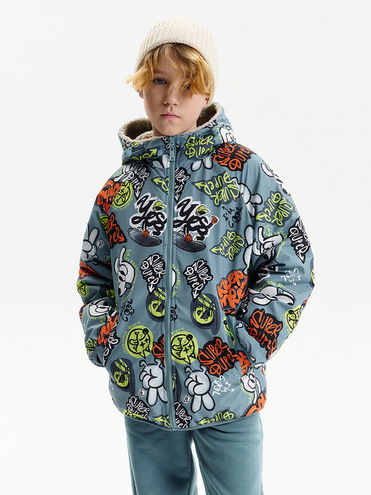 Куртка для мальчика выполнена в современном свободном крое оверсайз и имеет укороченную длину до подъягодичной складки. Покрой рукава реглан формирует мягкую линию плеча, а объемный верх рукава с заужением к низу обеспечивает комфорт и свободу движений. Низ изделия и рукава аккуратно окантованы эластичным пайпингом и слегка собраны, что защищает от ветра.