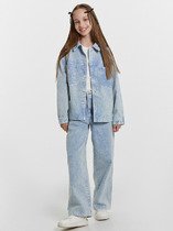 Широкие джинсы wide leg для девочки подростка. Застежка на молнию и болт, пояс дополнительно регулируется внутри с помощью эластичной тесьмы и пуговицы. Изделие выполнено из светло-голубого денима с характерными потертостями и прорезями на передней части. Джинсы имеют свободный крой с прямыми широкими штанинами и посадку на талии. Спереди — два кармана, сзади — два накладных кармана. На одном из них — этикетка с надписью.
