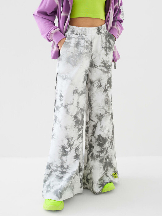 Широкие брюки для девочки подростка. Модель из хлопкового трикотажа футер без начеса. Пояс на резинке дополнен шнуром для регулировки объёма. На бедрах расположены удобные боковые карманы.