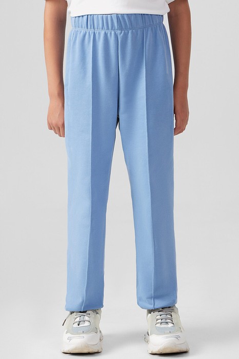 Брюки для девочек. Посадка на талии. Пояс цельнокроеный , внутрь застрочена эластичная тесьма 40RV. Боковые швы перенесены на перед. Низ изделия обработан швом в подгибку, внутрь застрочена эластичная тесьма.