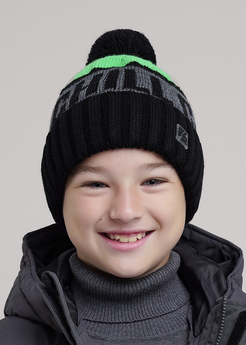 Совместные закупки Екатеринбург Детские аксессуары Шапки — 13.01 Clever Шапка детская для мальчика CLE 454508ап флис чёрный/зелёный