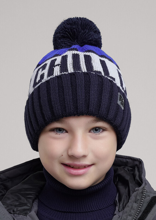Шапка детская с отворотом и ниточным помпоном, с утеплением флисом по всей голове. Выполнена из высококачественной пряжи, декорирована стильной нашивкой в височной зоне. Станет не только отличной защитой от холода, но и модным аксессуаром.