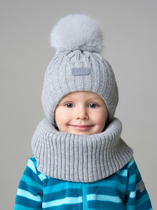 Комплект зимний детский: шапка и снуд из полушерсти. Тёплая вязаная шапка с отворотом на подкладе из флиса. Украшена нашивкой из искусственной кожи. Узкий снуд без оборотов вокруг шеи. Изделие сохраняет форму и стойкий цвет после многочисленных стирок.