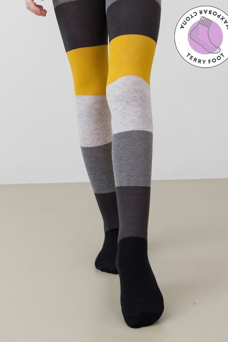Колготки с махровой стопой и рисунком в виде поперечных полосок. Продуманная конструкция: колготки не скатываются, плотно облегают ножку, не сдавливают в талии, но отлично держит колготки даже на самых активных детях. Стильно и комфортно!