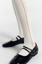 Колготки гладкие с имитацией гольф и рисунком на нижнем бортике в виде цветочка с элементом пикота.