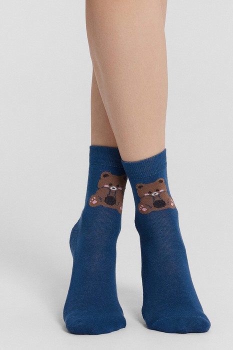 Детский классический носок с плюшевым следом и рисунком в виде мишек.