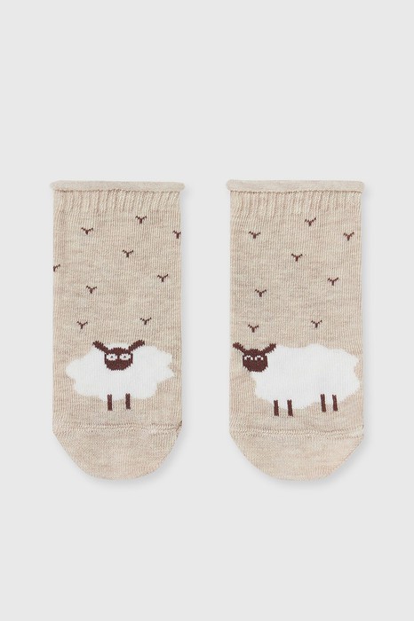 рис.2385 Детский гладкий носок без борта, с рисунком в виде барашков