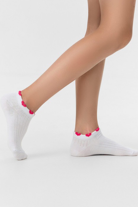 рис.3191 Детские укороченные носки выполненный перекидным переплетением (лапша), с пикотом в виде сердечек на бортике.