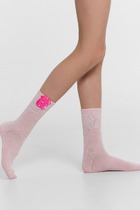 рис.3165 Детские классические носки выполненных перекидным переплетением (лапша) с рисунком в виде мелких сердечек.